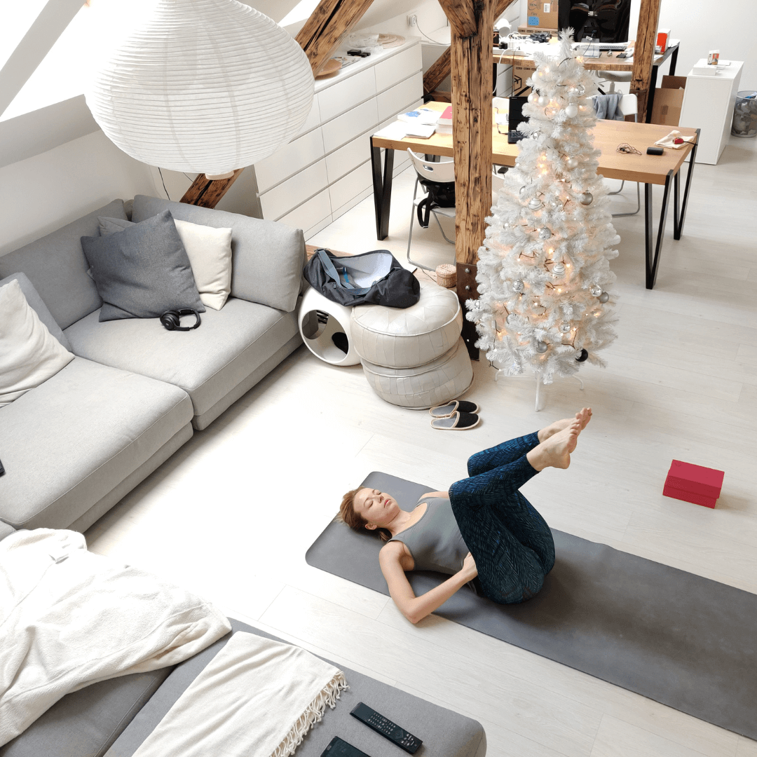 A Pilates mat is recommended, but you can also use a towel or if you cannot get onto the floor, you can do Pilates on your bed.