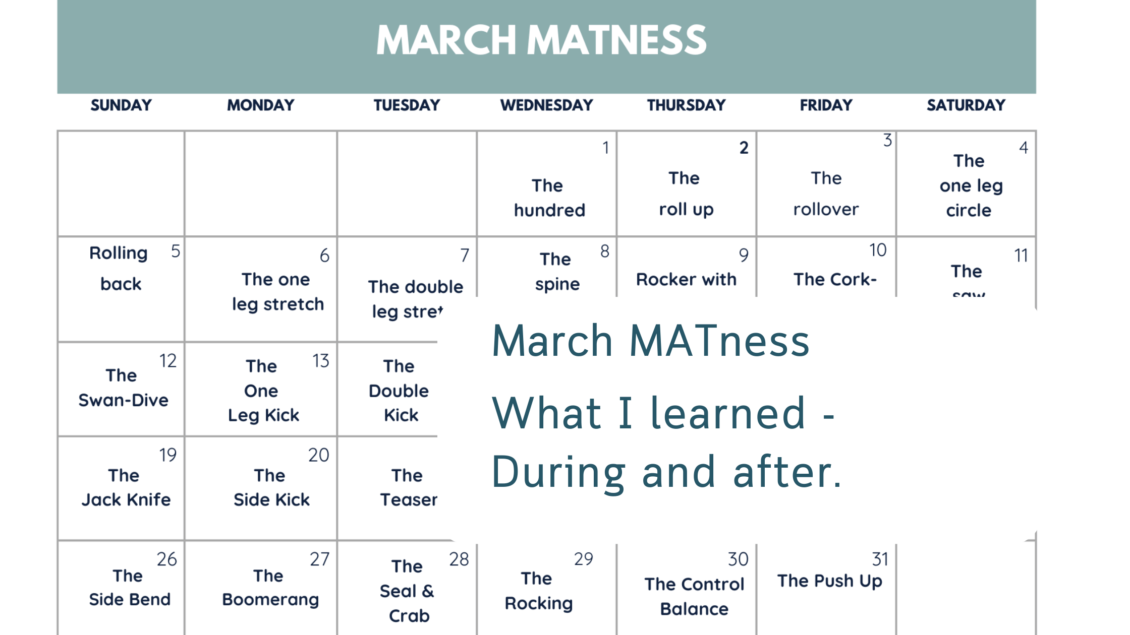 I must say that March MATness was quite the eye-opener. I noticed how many exercises I personally don’t do, not only because they are really difficult, or my age, but because my lower back or tight shoulder really doesn’t like them, regardless of how much I have warmed up. Also, as I become older, I think why should I do something that doesn’t feel good on my body?