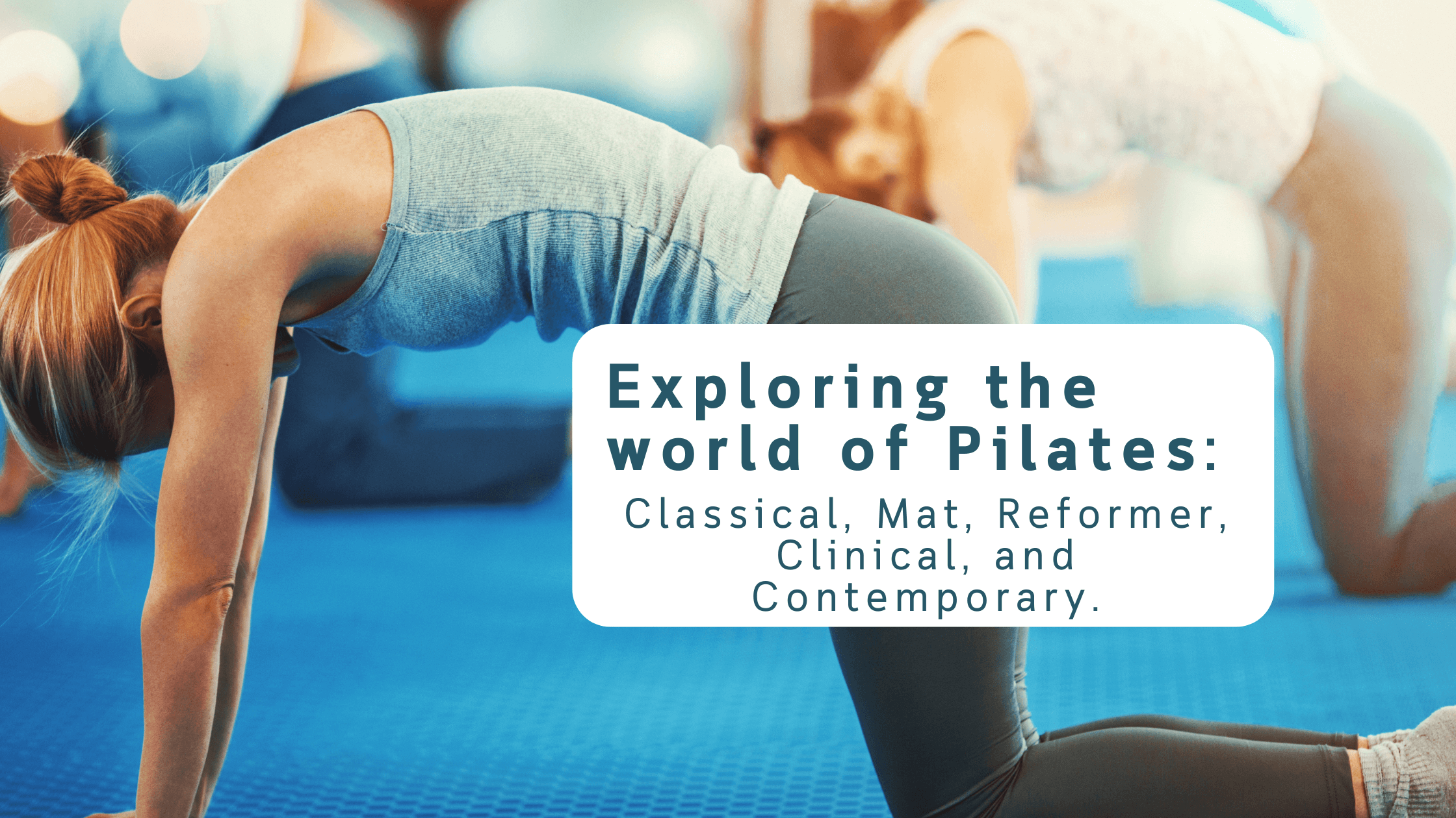 Looking at the various types of Pilates: - Classical, Mat, Reformer, Clinical, and Contemporary.